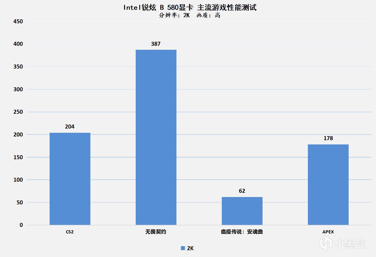 下一款也是當前火熱的射擊遊戲《無畏契約》,在EDG代表國內奪得第一個全球冠軍後,玩家們的熱情非常高漲,使用B580顯卡在2K分辨率高畫質下,我們得到了大約387FPS的超高幀數,射擊和移動都非常絲滑流暢,配合高刷電競顯示器能讓玩家如虎添翼。