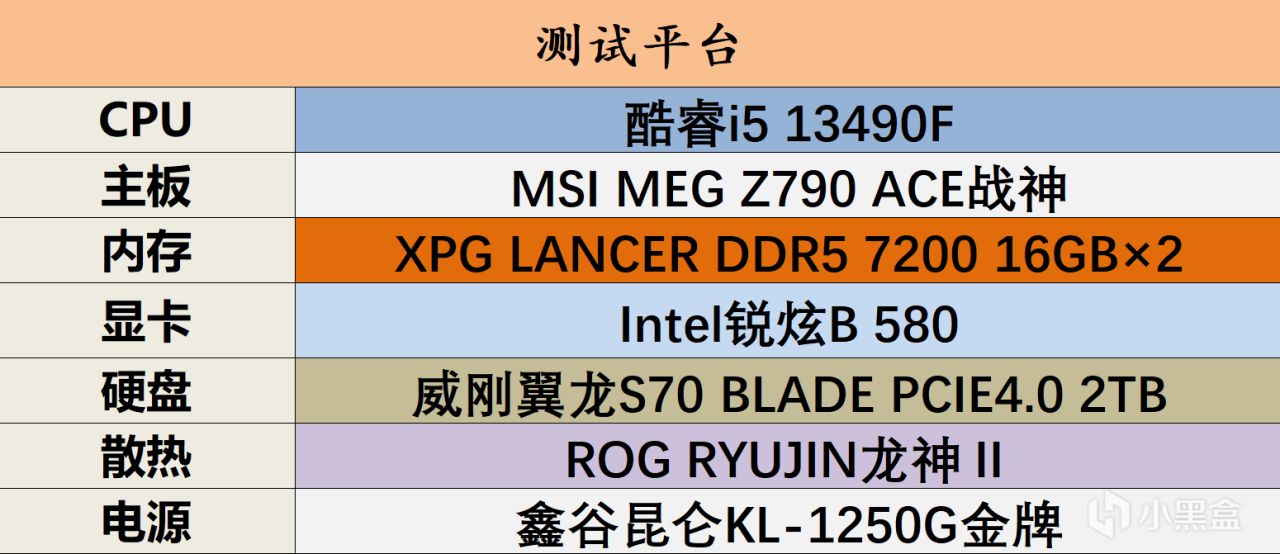 爲了能夠良好的發揮這款定位爲2K分辨率主流遊戲的顯卡,我們在CPU方面選用了定位和它比較類似的Intel 酷睿i5 13490F,這款CPU採用Intel 7工藝打造,酷睿i5 13490F擁有6個性能核心以及4個能效核心共10核16線程,性能核最大睿頻的頻率可達4.8GHz,能效核最大睿頻可達3.5GHz,並且酷睿i5 13490F有着高達24MB的緩存,這款CPU的TDP僅爲65W,適合絕大多數玩家的需求,是非常適配我們今天主角銳炫B580顯卡的搭檔。