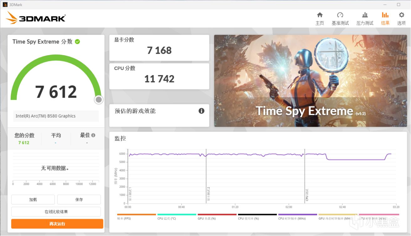 而在壓力更大的TimeSpy Extreme中,B580也取得了7168分的好成績!遠遠高於對手RTX 4060Ti的6200分!