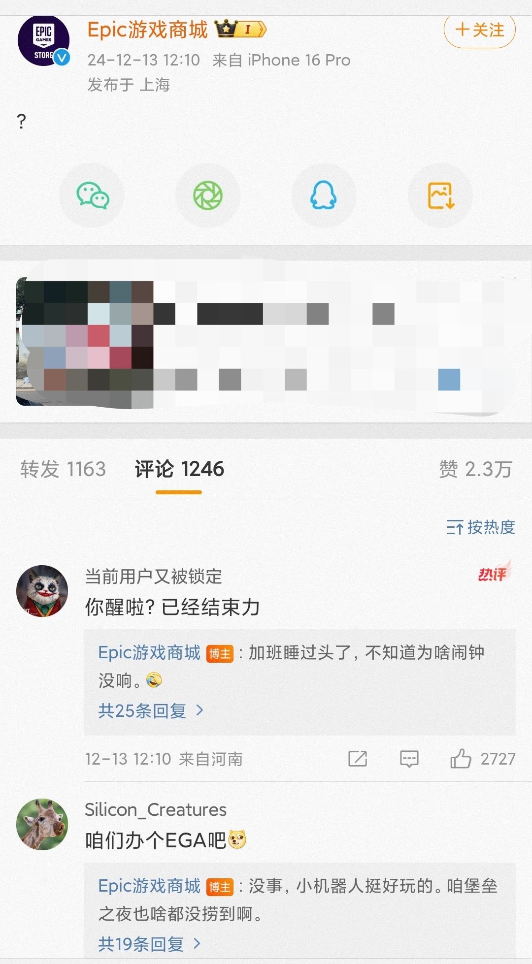 此刻e宝的心情是复杂的,仅在wb发出一个“问号?”