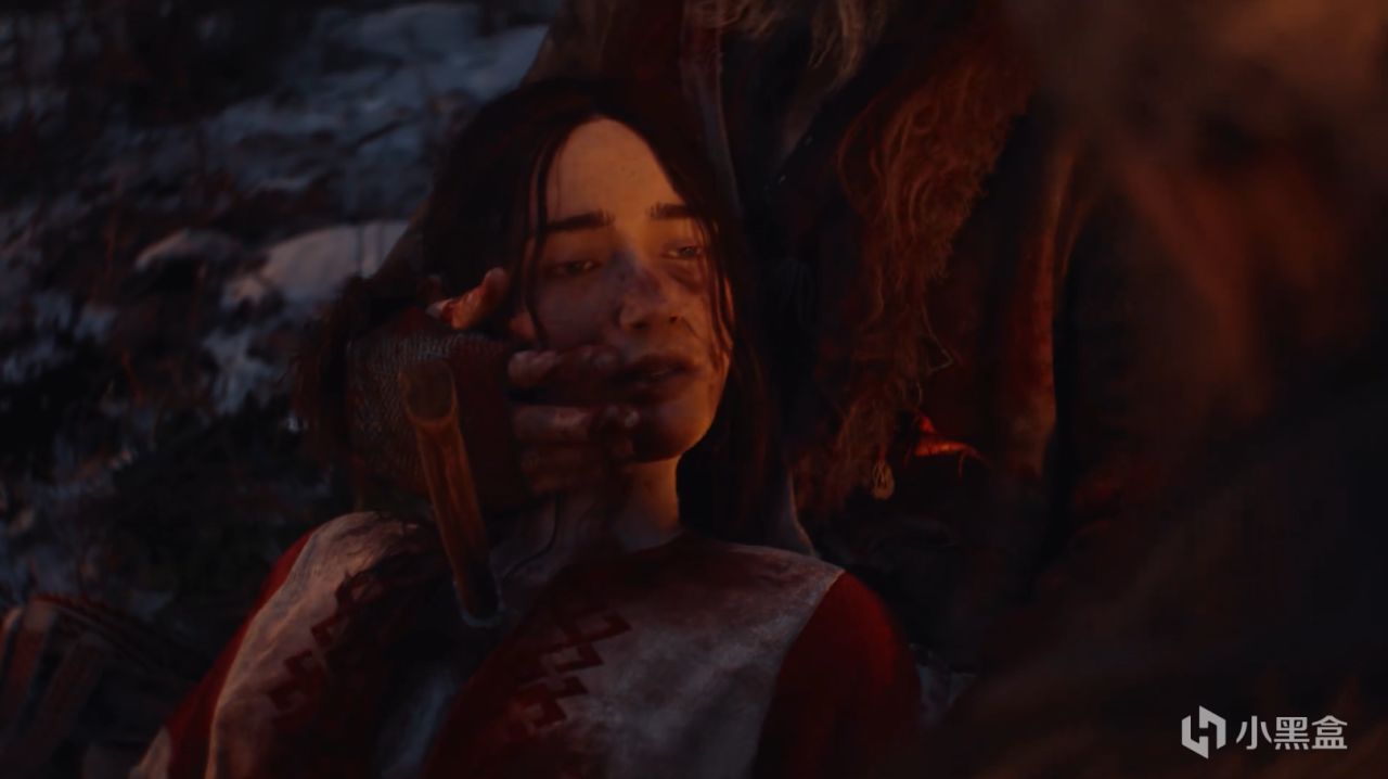 最後一幕,擊殺怪物後回到村子。父親抱着女兒的屍體哭泣,女孩胸口插着的武器說明是人爲殺害的。