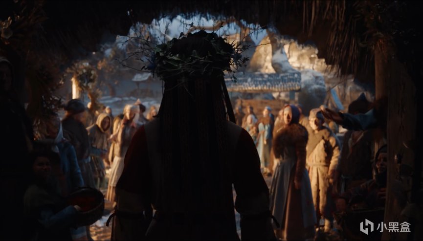 可以觀察到遠處房屋上有積雪,且村民穿的都比較厚實,可以確定爲故事發生在史凱利格。根據已有信息可以知道女孩要遵循村子的“傳統”,被送去獻祭給“天神”。