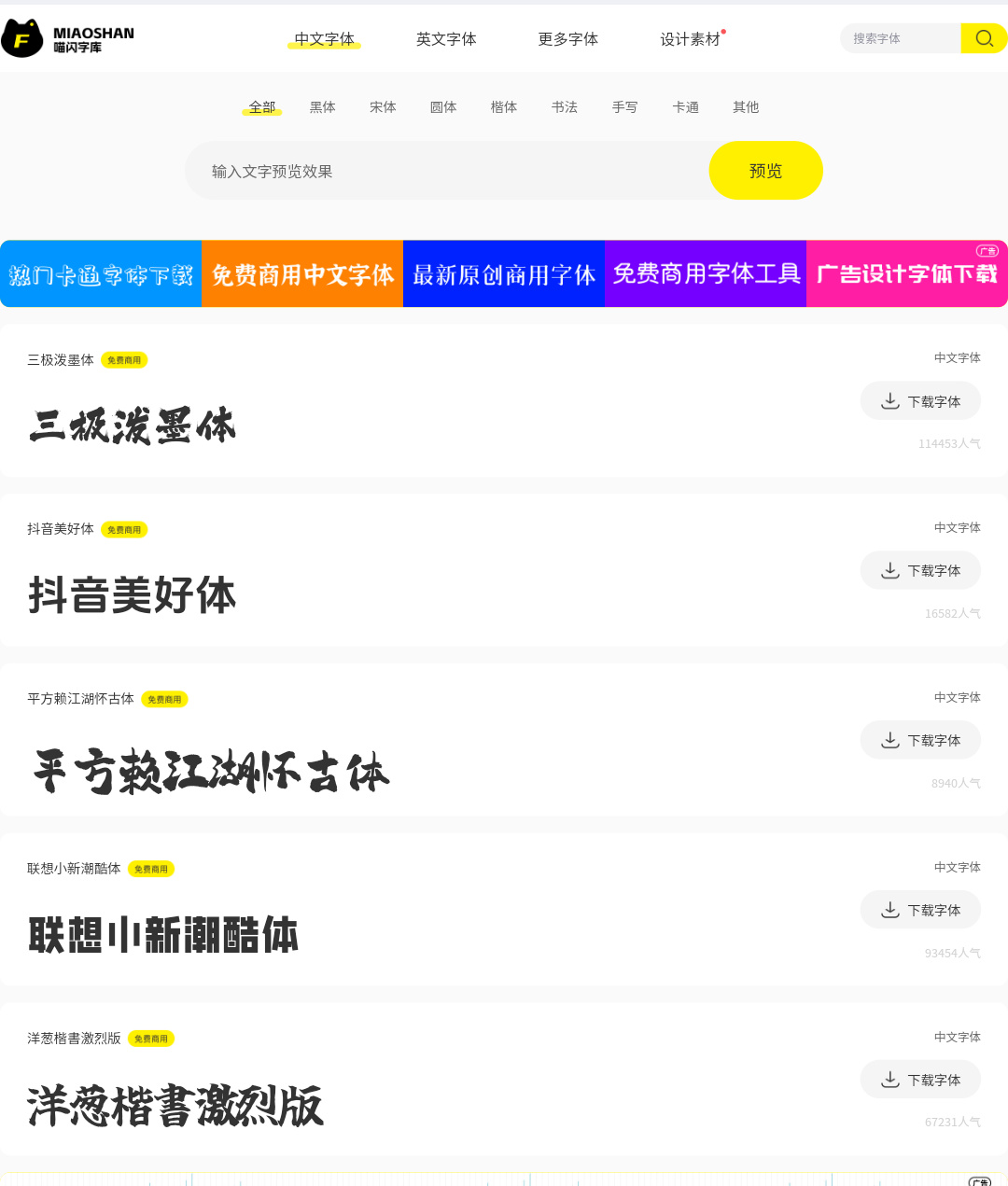 一個專注於中文字體資源的網站,它提供了海量的字體免費高速下載服務。用戶可以在這裏瀏覽、選擇和下載各種中文字體,同時也支持英文字體和圖形字體。