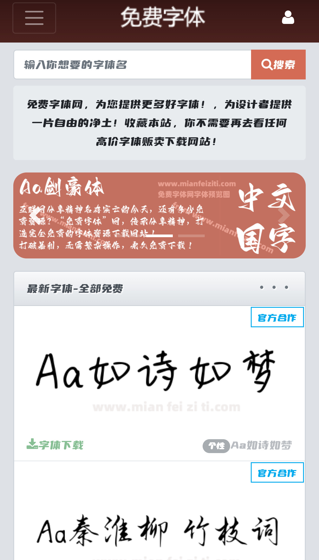 收錄免費商用字體並提供字體信息和爲其提供WebFonts字體CDN服務的平臺。