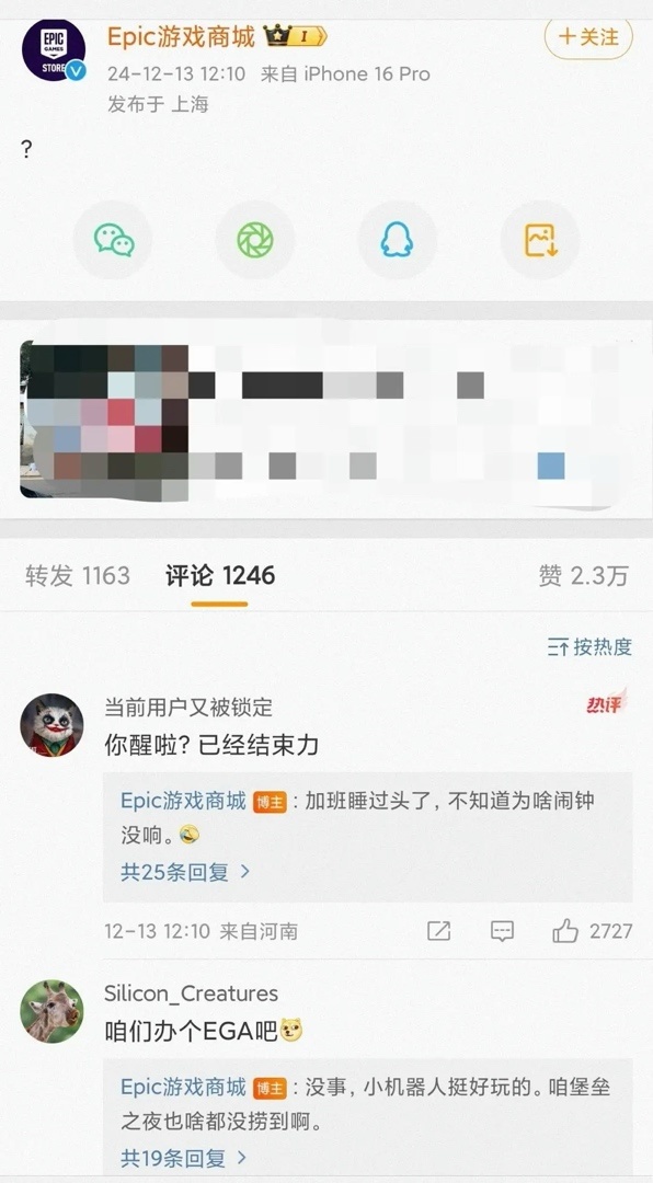 此刻e寶的心情是複雜的,僅在wb發出一個“問號?”就衝上熱搜。雖然對結果不滿意,但e寶還是很大度的,回覆粉絲小機器人挺好玩的,他家的堡壘之夜什麼都沒撈到。