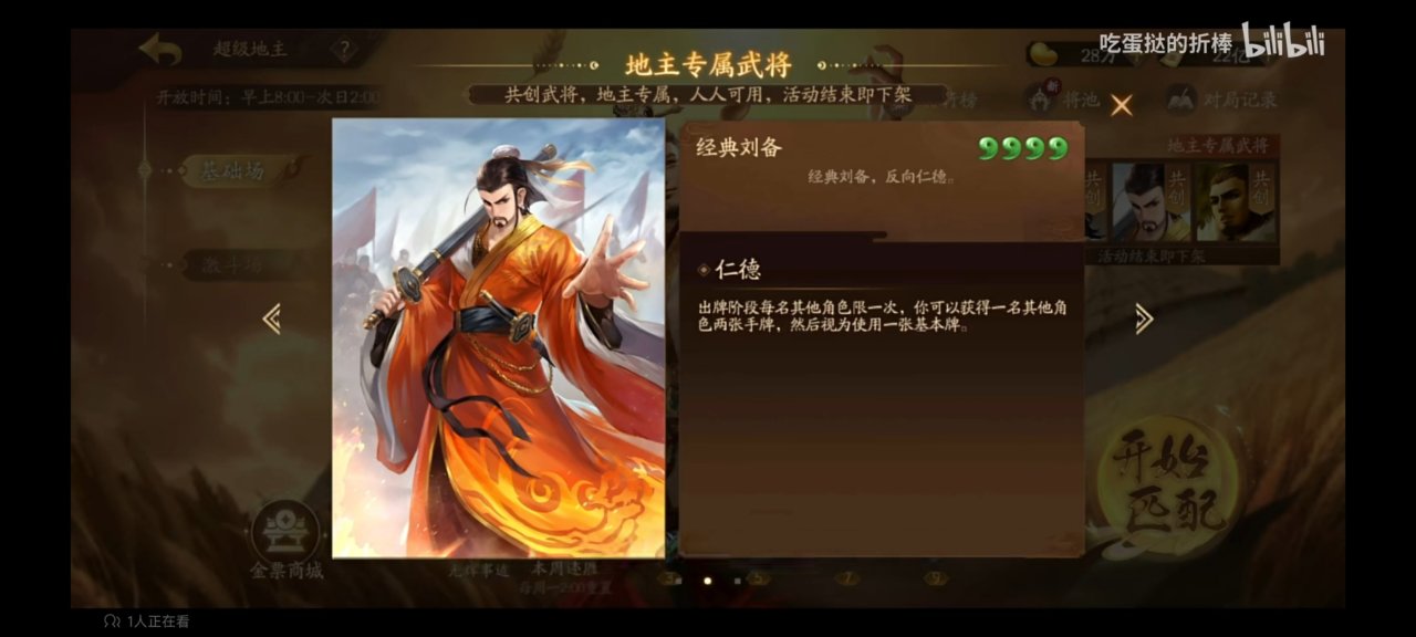 今天带大家赏析一下东汉男魅魔、《三国杀一将成名》限时地主武将、缺了大德的刘备。