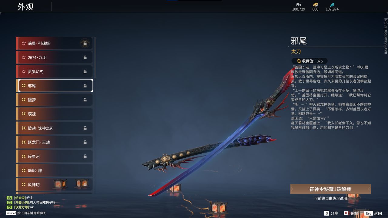 謫星-引魂姬:目前太刀唯一的謫星紅皮,其熱度也是很高,目前藏寶閣低價6000