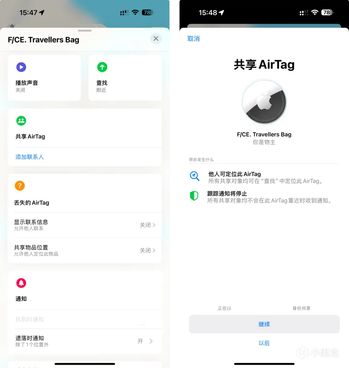 查找 app:AirTag 等物品可與可信聯繫人共享位置,且他人可用非 Apple 設備打開共享鏈接;可爲物品添加聯繫人信息,方便他人聯繫失主,但是iOS18的查找目前沒了實時功能···