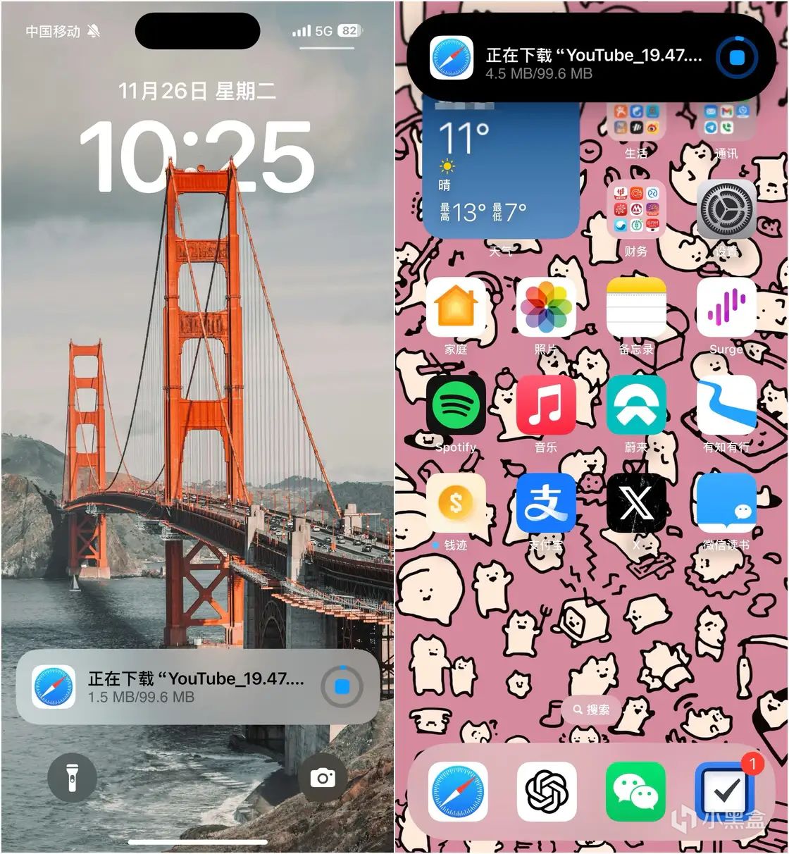 Safari 瀏覽器:下載文件時,新增鎖屏和靈動島上的實時活動顯示下載進度;新增 “不安全連接警告”,訪問無 SSL 認證網站時發出警示。