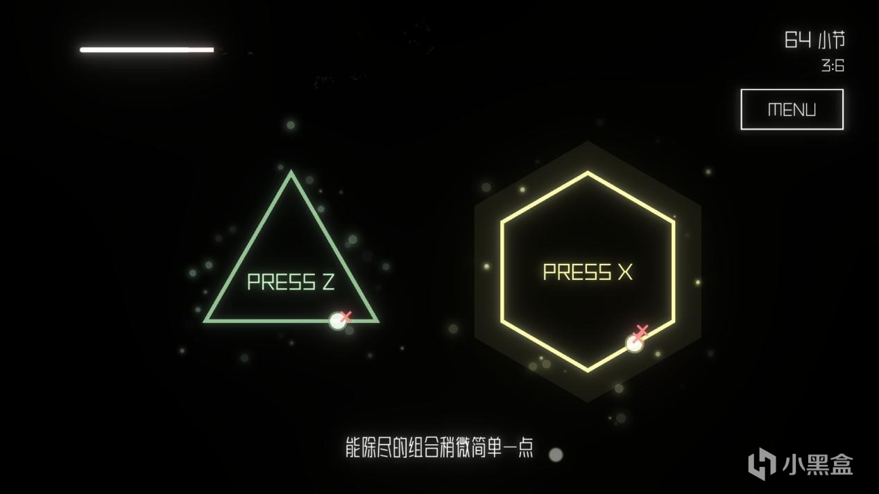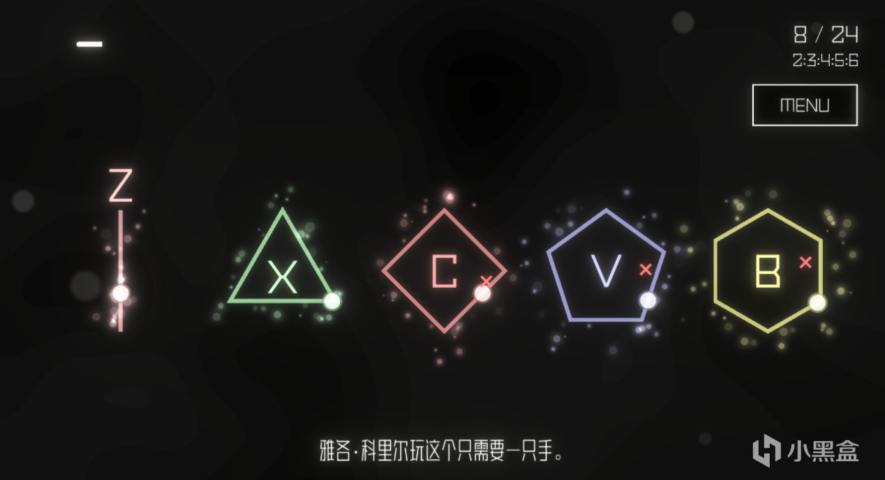 說是節拍器替代品,《交錯錯錯錯拍子》在本質玩法上其實也很簡單,在一個多邊形邊框上有一個運動的小點,只需要玩家在這個運動點位運動到多邊形的頂角時點擊對應鍵位(ZXCVB)即可,是不是屬實是簡單到“有手就行”了?