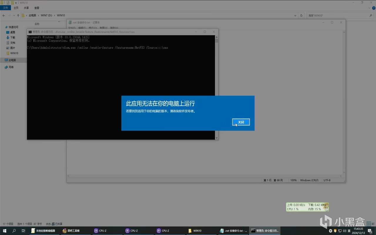 好在神州網信官網也提供了這個.NET的CAB安裝包,需要解壓後放在C盤新建的一個叫SXS的文件夾,然後手動啓動CMD或POWERSHELL輸入dism.exe /online /enable-feature /featurename:NetFX3 /Source:c:\sxs安裝。
