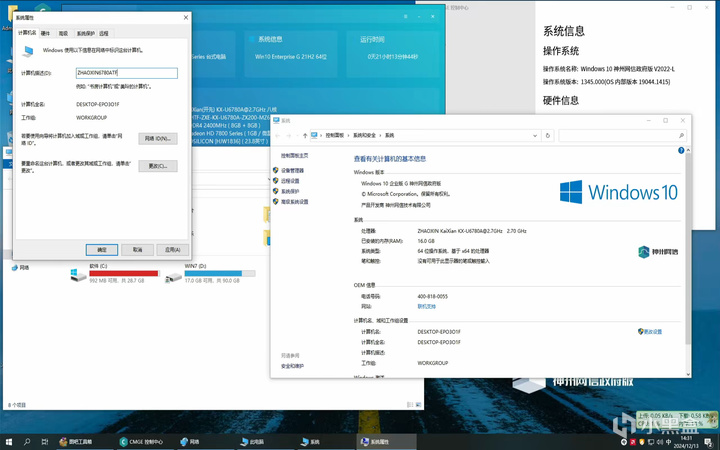 總之神州網信版WIN10相比LTSC操作起來還是相對比較麻煩的,有很多針對隱私保護的限制項目。不過只要改好了之後還是能當正常系統用的。