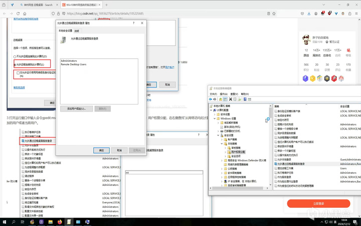實測垃圾佬的使用環境選完允許遠程連接到此計算機並關閉僅允許使用網絡級別身份驗證進行連接即可,如果還不好使再選擇用戶添加administrator之類的用戶。咱反正是沒用改就能登了。