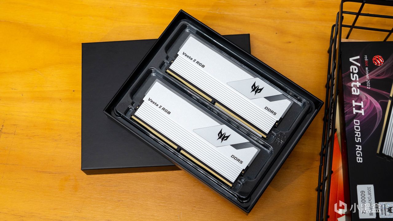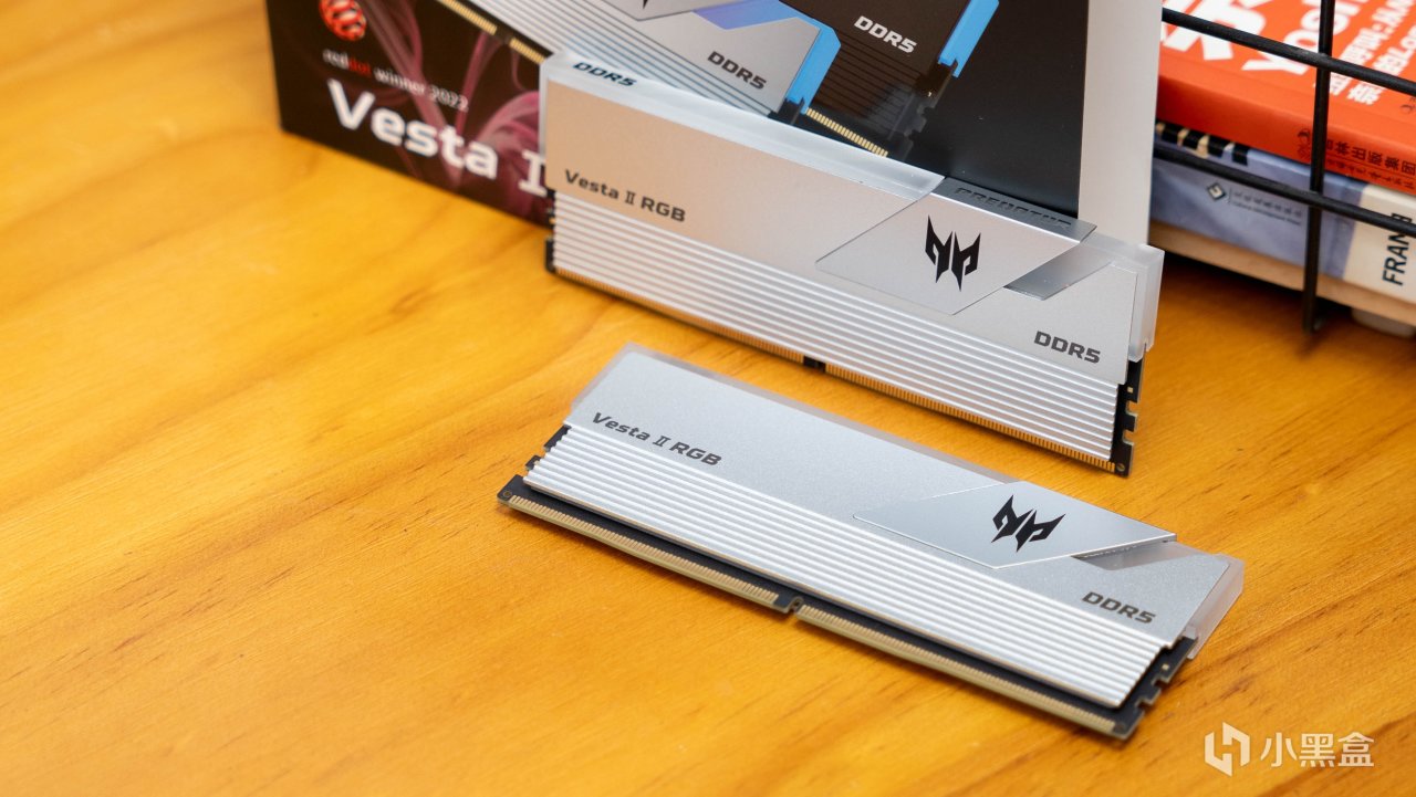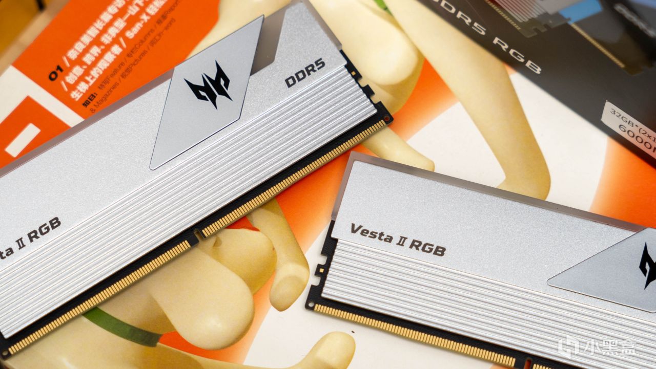 內存整體覆蓋銀色磨砂質感的金屬馬甲,內存表面點綴了Vesta II RGB、DDR5以及宏碁掠奪者logo。