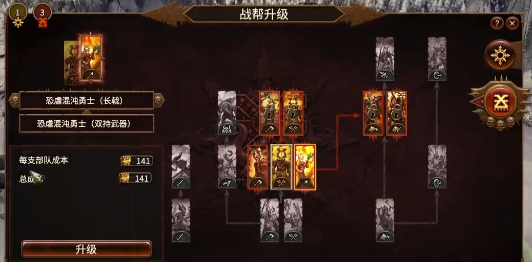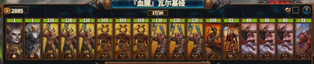 关于部队我没有分什么具体的前中后期,因为中途还会招募、升级和凑数一些杂牌单位,又不像秩序兵种那样本数条件明确,混沌兵种只需升级就行了,所以仅供大致的方向和参考价值。