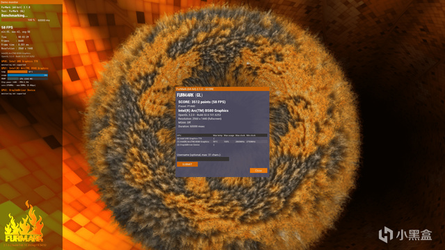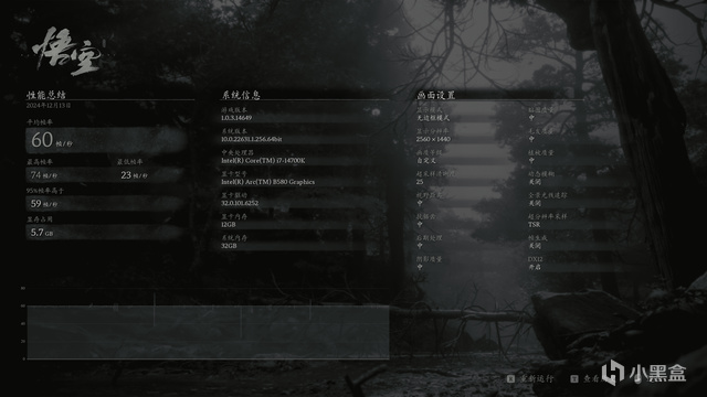 黑神话悟空的测试情况,黑神话悟空也是支持英特尔XeSS超采样的,但是通过XeSS反而跑不起来,所以我用了TSR超采样,同样是2K分辨率、中画质下,关闭光追,平均帧率可以达到60帧,可以畅玩。