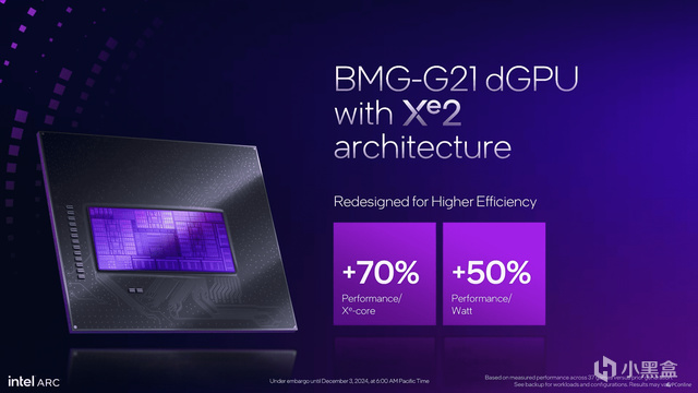 另外,得益于架构的升级,每个 Xe2核心性能相比之前提升 70%,能效比也提升 50%。