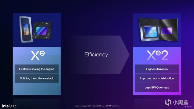 B580 Photon显卡这次的升级幅度是比较大的,首先采用了全新升级的Xe2架构,针对Xe架构进行了优化改进,提升了兼容性、软件适配性、效率,并减轻软件对硬件资源占用。