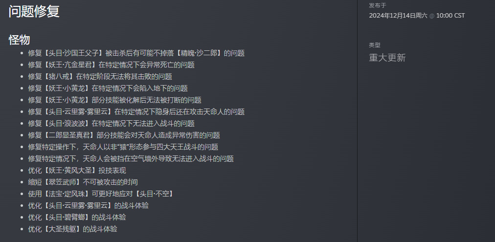 《黑神話:悟空》最新版本 1.0.13.16669 終於在 Steam 迎來了更新,本次補丁的內容相當豐富,增加了小地圖、挑戰玩法、新套裝等:
