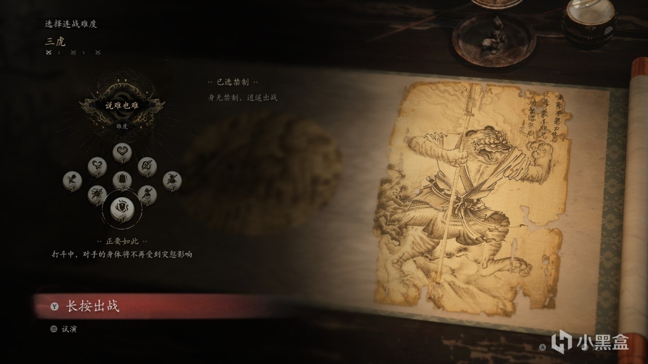 所谓【禁制】,就是图中1—4各不等数量的限制条件,一共有九种,比如这个1禁制【正要如此】和4禁制【油锅洗澡】的限制条件差别就很大,能够同时选中多个禁制进行挑战
