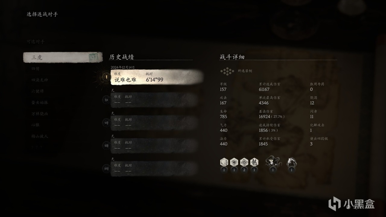 战斗结束后,我们的战斗效果会保存到下一个敌人,比如葫芦、药、法力值和各个技能的冷却,所以我们要合理计算时间进行挑战