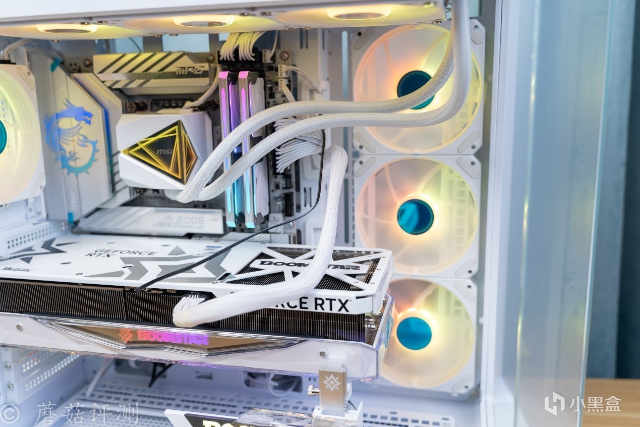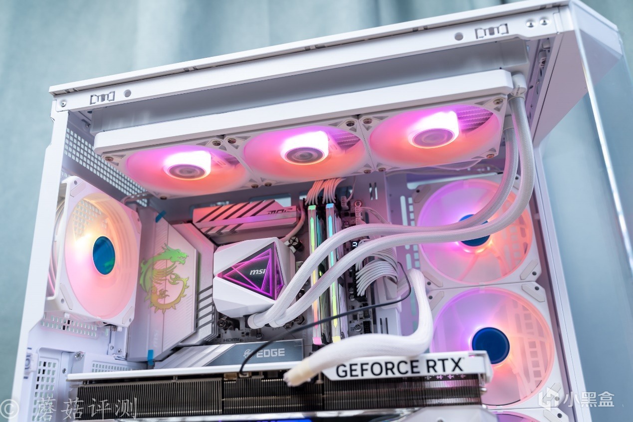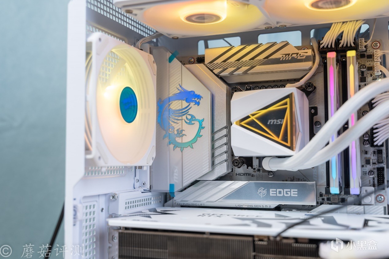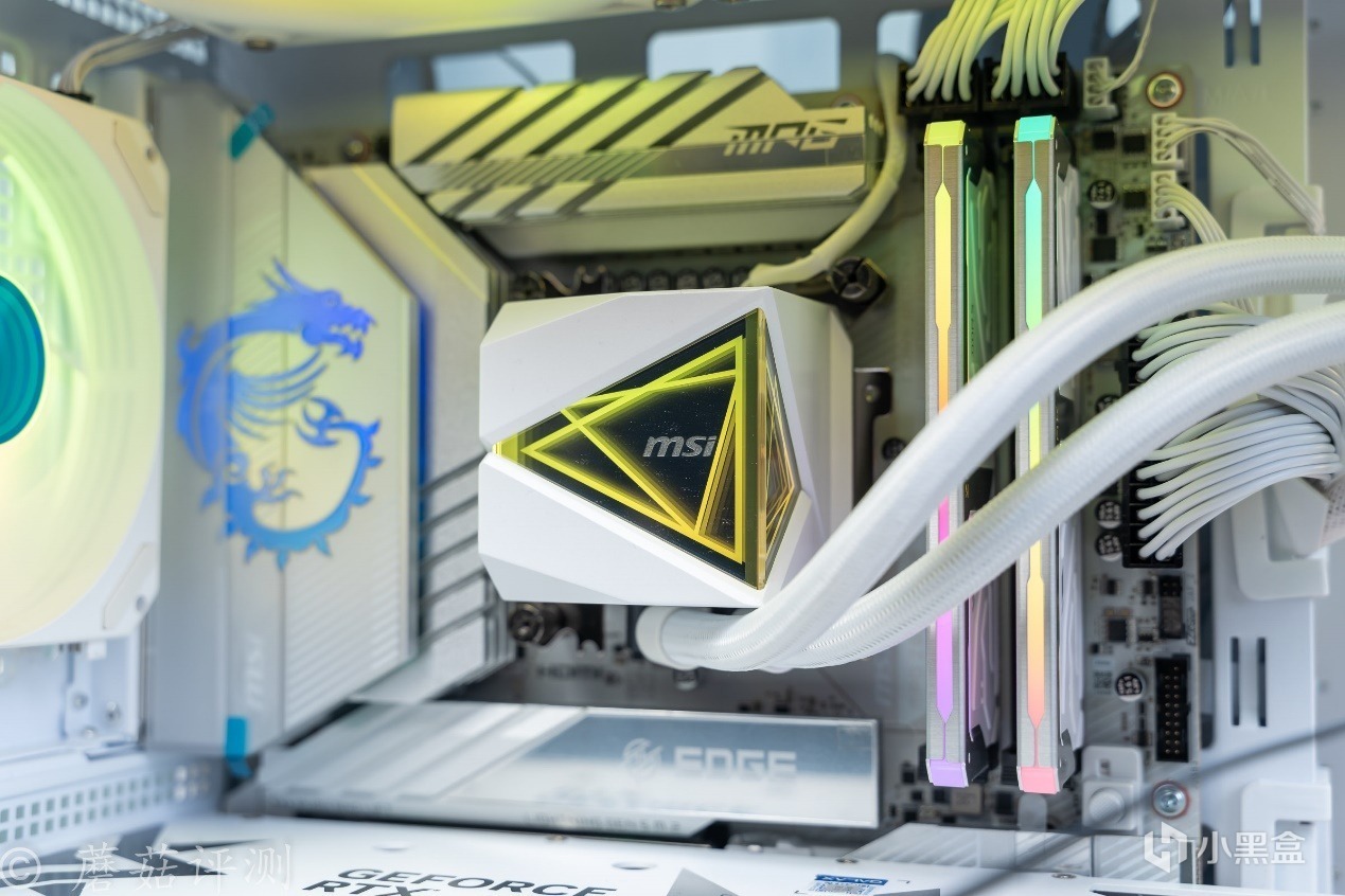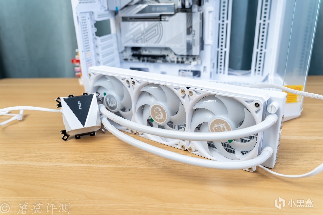 ▼水冷用的是微星的MAG CORELIQUID I360 WHITE寒冰,這款水冷整體也是白色配色的,顏值非常漂亮。另外在一些細節上,設計十分考究。