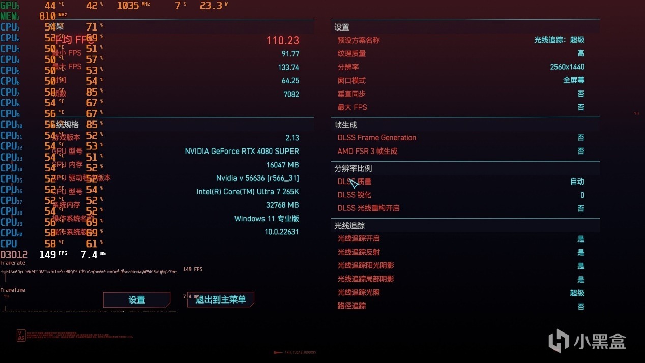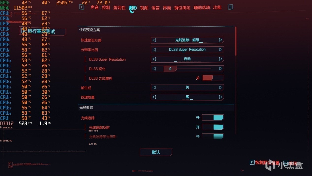 ▼賽博朋克2077,光追超級特效,2K分辨率,大力水手DLSS自動。