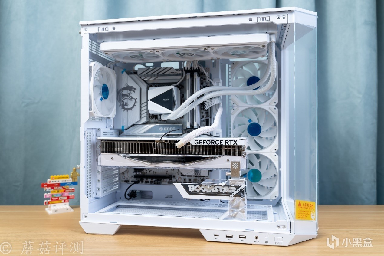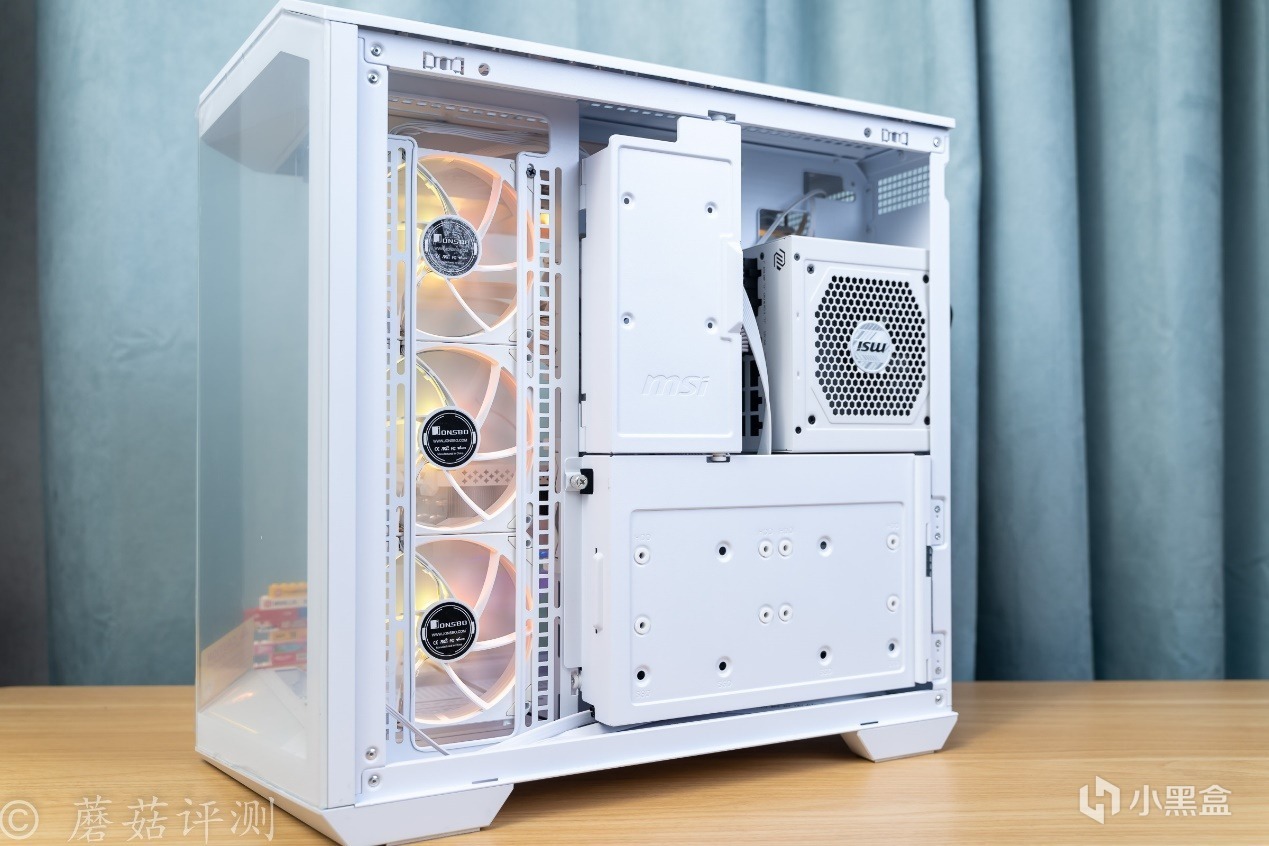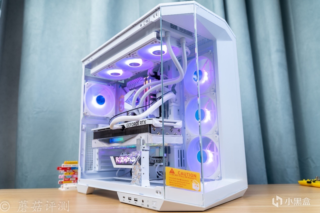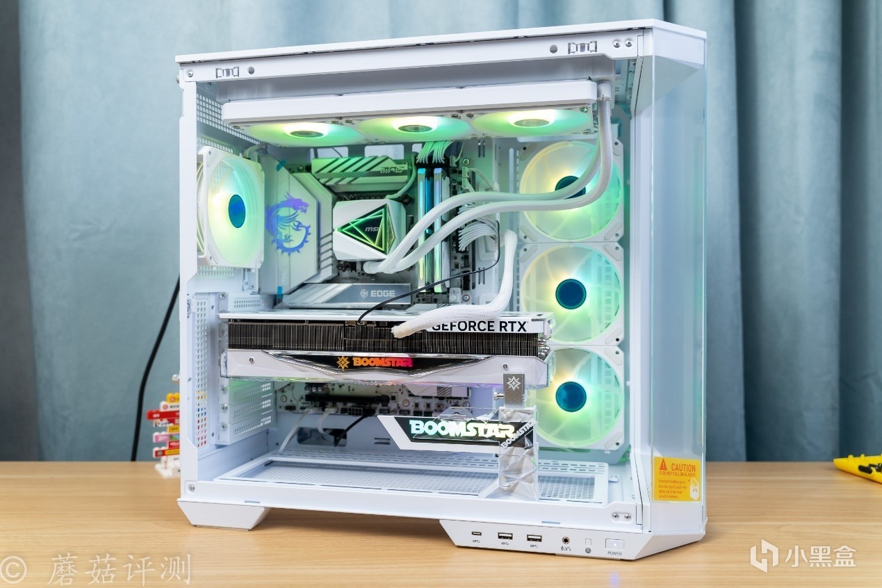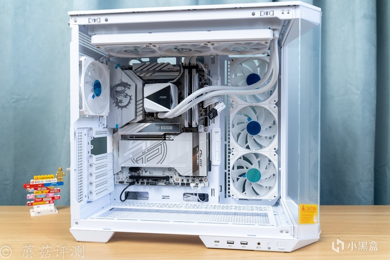 ▼機箱是微星的MAG PANO 100L PZ WHITE白刃PLUS,這款機箱採用經典的海景房設計,機箱的前部、側面均有超大面積的側透玻璃,可以擁有270°超廣的展示角度,全方位的展示機箱內部的硬件。