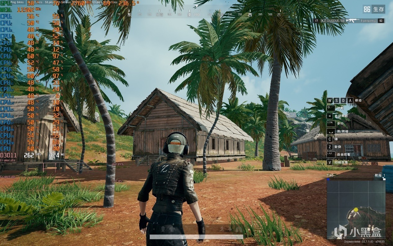 ▼絕地求生PUBG,2K分辨率,全高畫質,室外遊戲幀數僅有262幀,顯卡佔用僅有76%。