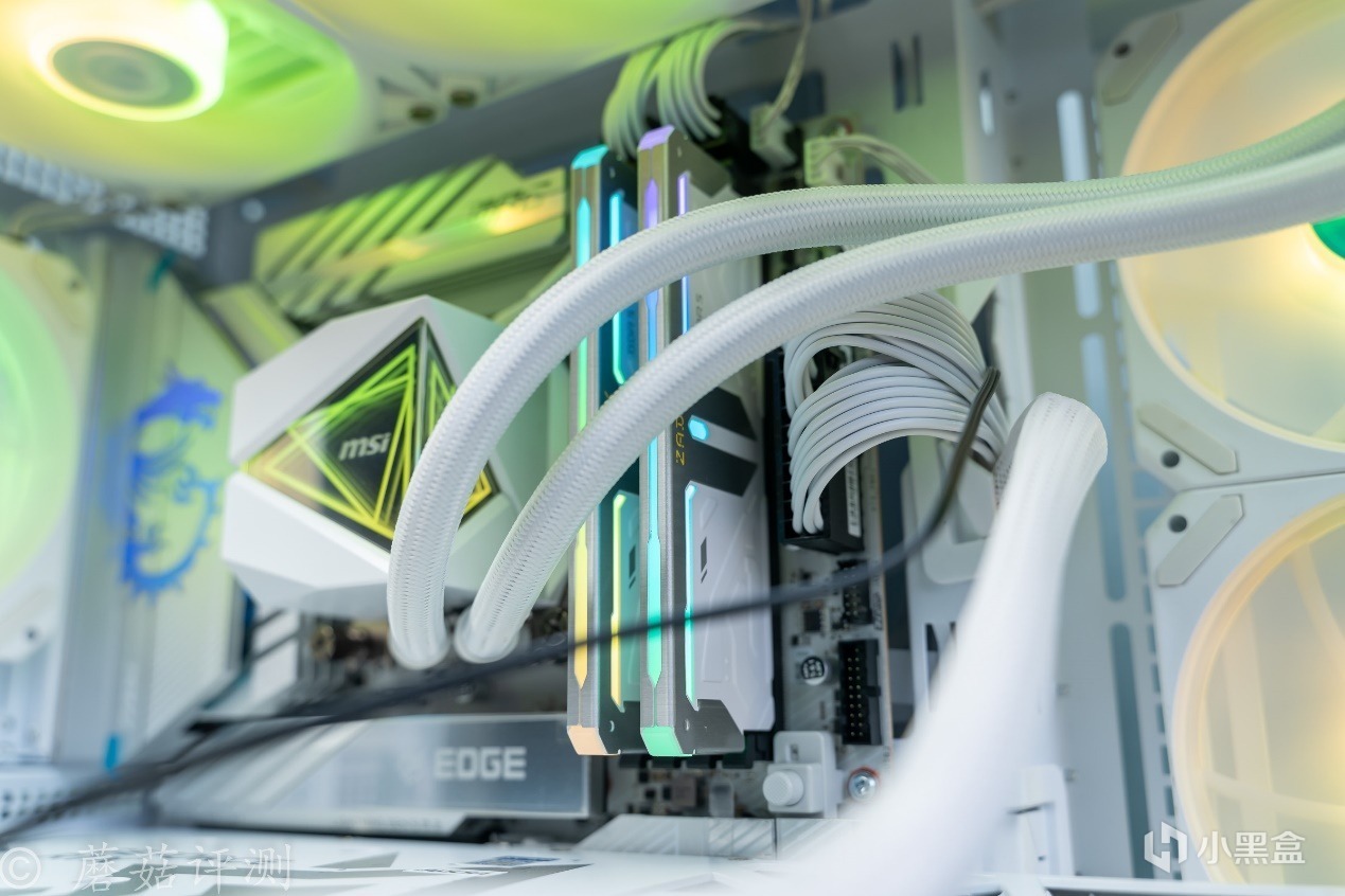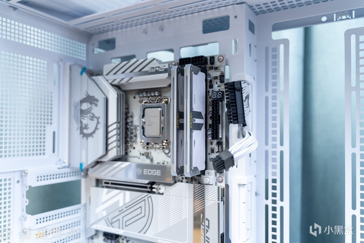 ▼這套內存安裝到主板上,首選2、4插槽。宇瞻ZADAK的這套白色金屬馬甲的版本,搭配白色配色的主機,特別搭配,尤其是微星這塊MPG Z890 EDGE TI WIFI刀鋒鈦主板,其主板正面的金屬馬甲也是白色搭配銀色的設計,互相呼應。
