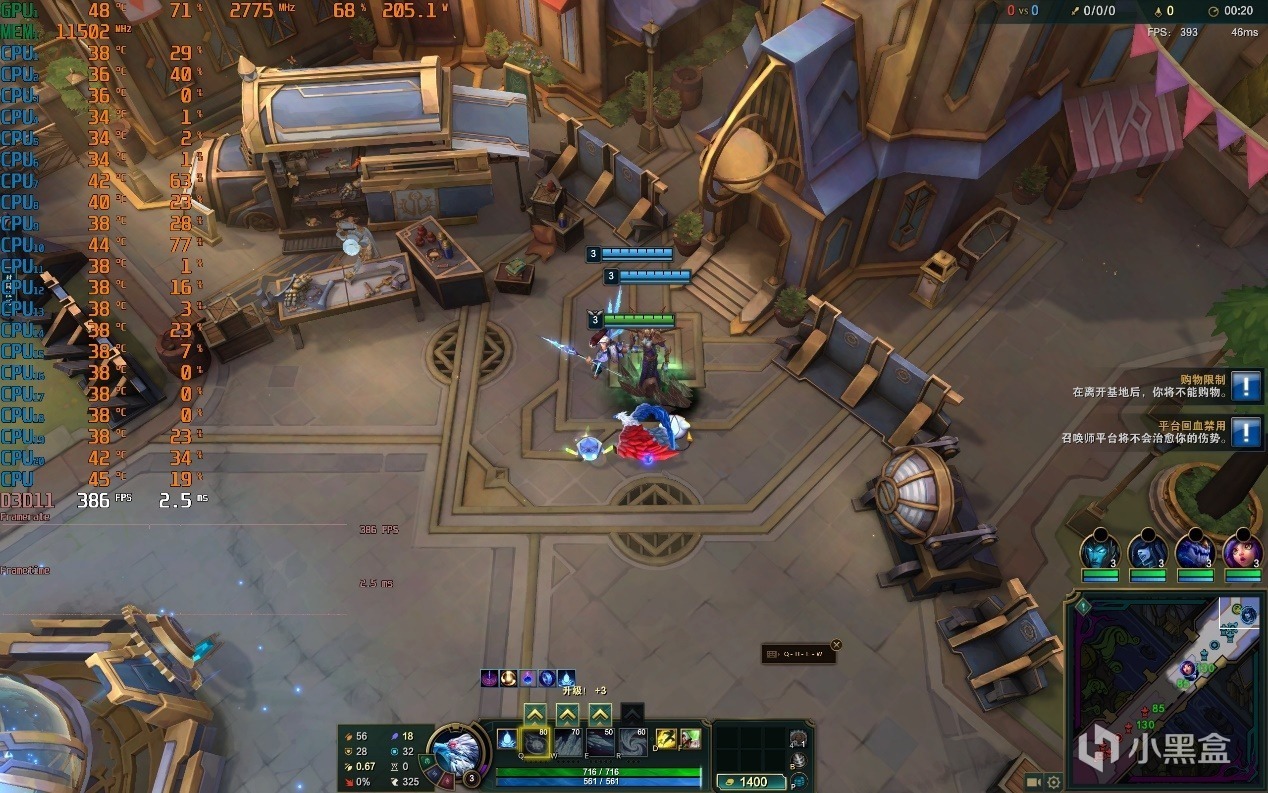 ▼遊戲實測,玩個LOL大亂鬥模式,2K分辨率全極高畫質,泉水遊戲幀數在386幀左右,表現很一般,說實話。