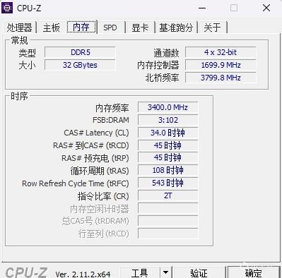 ▼內存默認打開XMP,頻率可以輕鬆穩定在6800MHz,時序34-45-45-108。