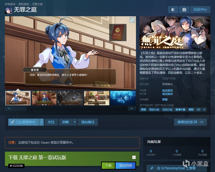 《无罪之庭》是一款由猫龙游戏开发的法庭推理类独立游戏,讲述了新手女性律师雷冬雪在职业生涯中的探索与成长,并在揭开惊天阴谋的过程中,面临内心的选择与改变。