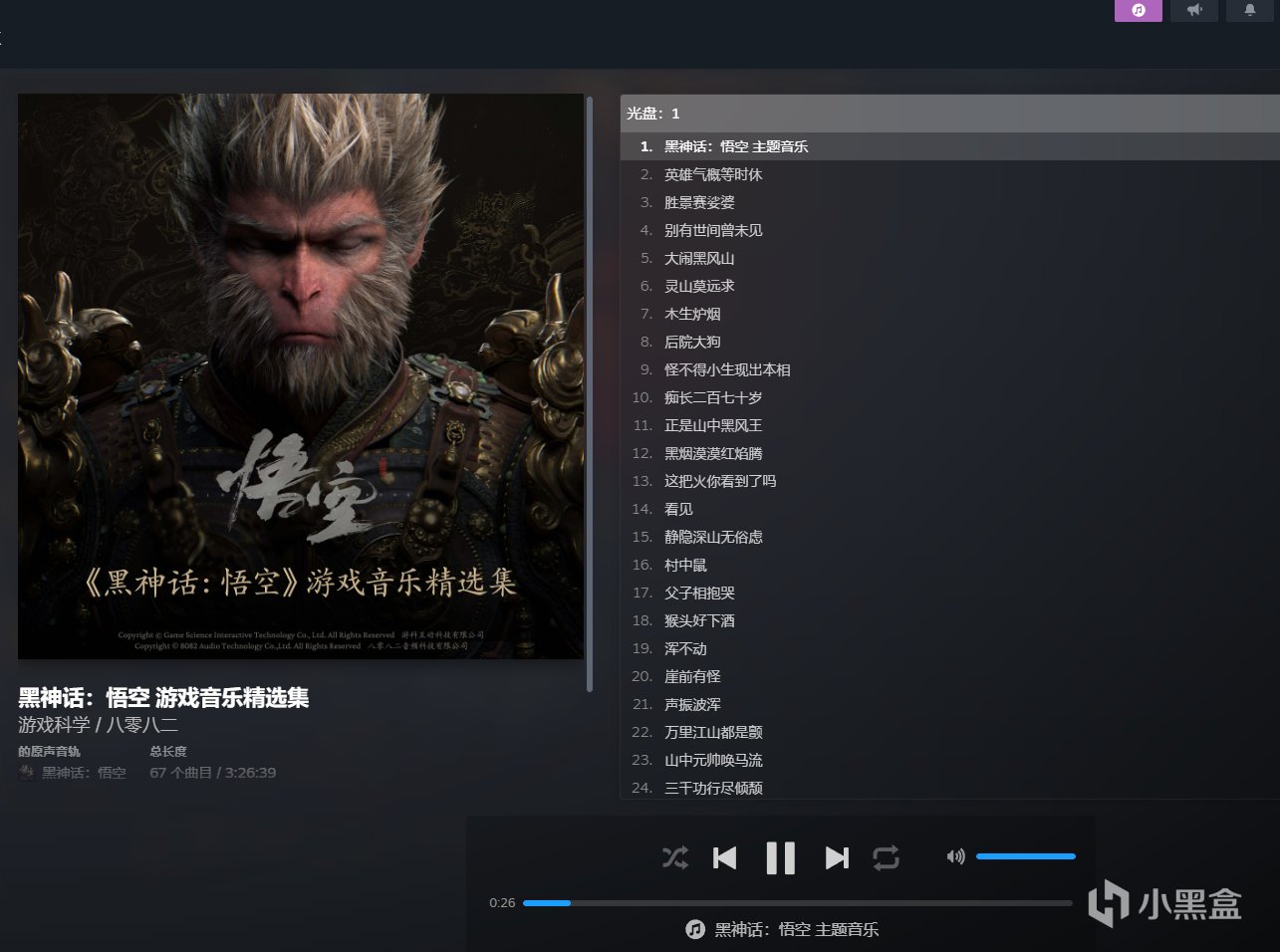 黑神话悟空之前虽然买了豪华版送了音乐原声,但每次要听必须打开游戏在小曲里听。
