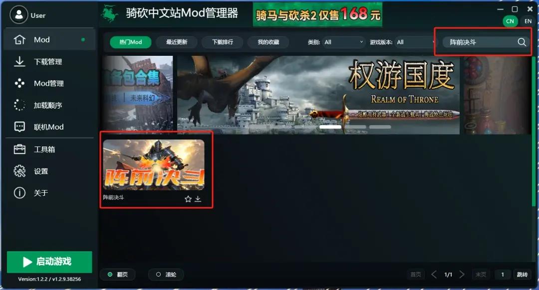 也可以直接百度搜索“騎砍中文站 下載中心”,進入下載站後搜索“陣前決鬥”進行下載。