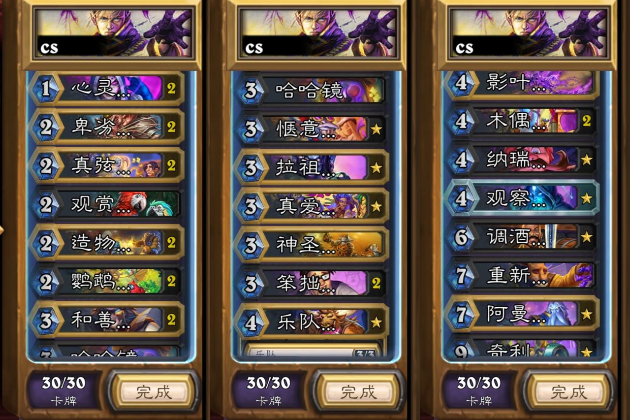 【银行家】【观赏鸟类】这种发现牌库的算抽到,会被杂役变成临时牌。【造物协议】是发现复制,不会被杂役弃掉。【真爱永恒】为了前期更顺滑,不必强行续杯。