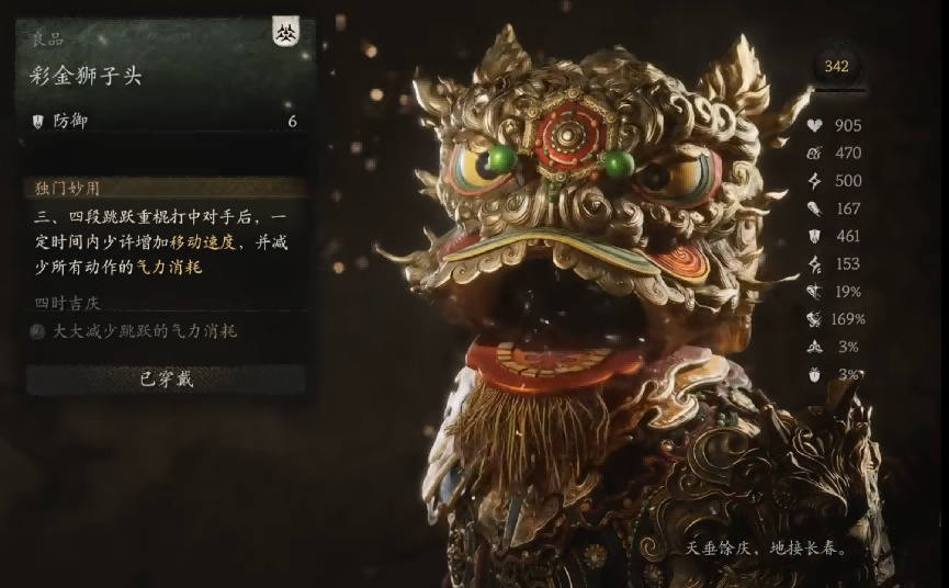 这个套装在土地庙处就能领取,包含“彩金狮子头”以及配套的披挂。
