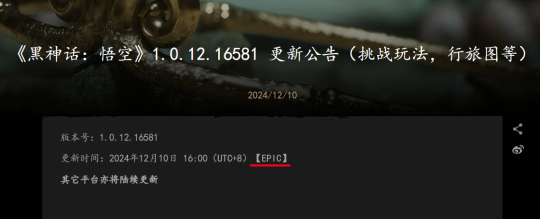 地球被“毁灭”的原因,则是在周二(12月10日)那天,《黑神话》官方发布了一则大型更新公告。