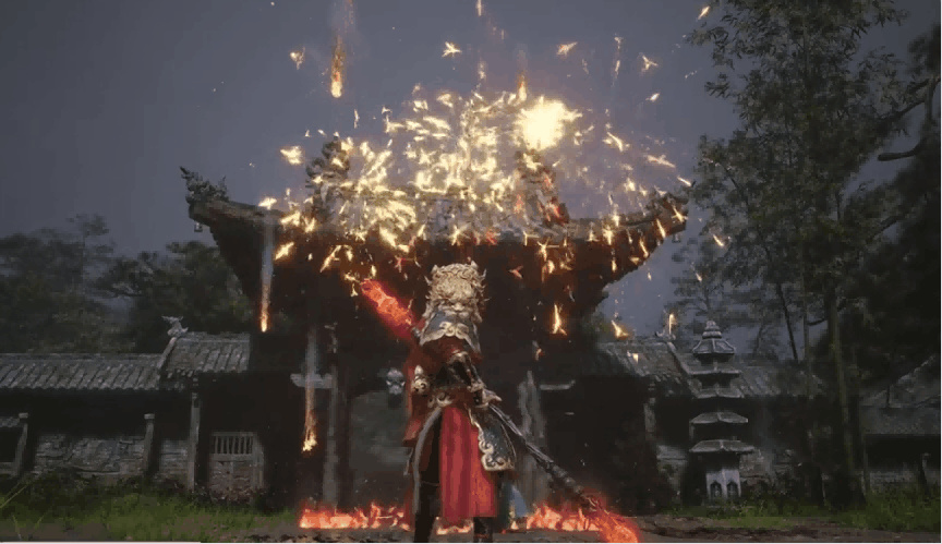 装备全套“彩金”套装之后,原地施放“安身法”,就能触发“点放烟花”的效果。四舍五入,这也相当于游戏科学给玩家们拜早年了。
