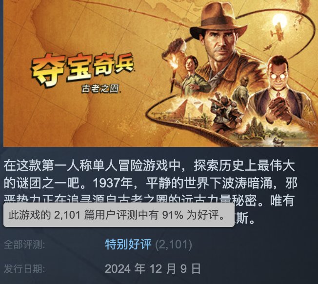但从好评数量就能看出来,和同行相比,《 夺宝奇兵:古老之圈 》的首发日优化已经令大部分玩家比较满意。