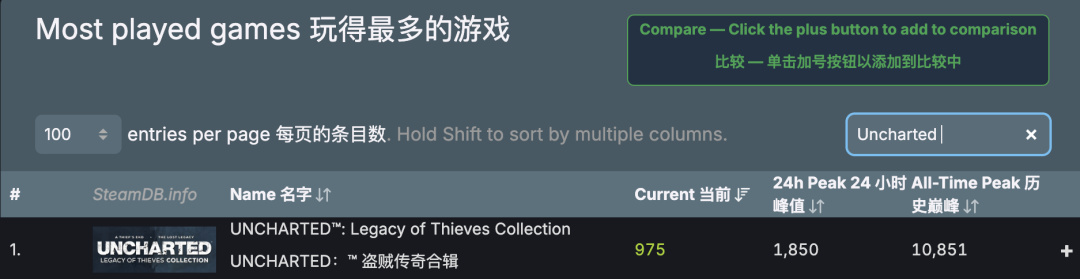 古墓丽影最新作《 古墓丽影:暗影 》 steam 历史峰值也就 38268 人。《 神秘海域 》盗贼传奇合辑被吹上天, steam 历史峰值是 10851 人。