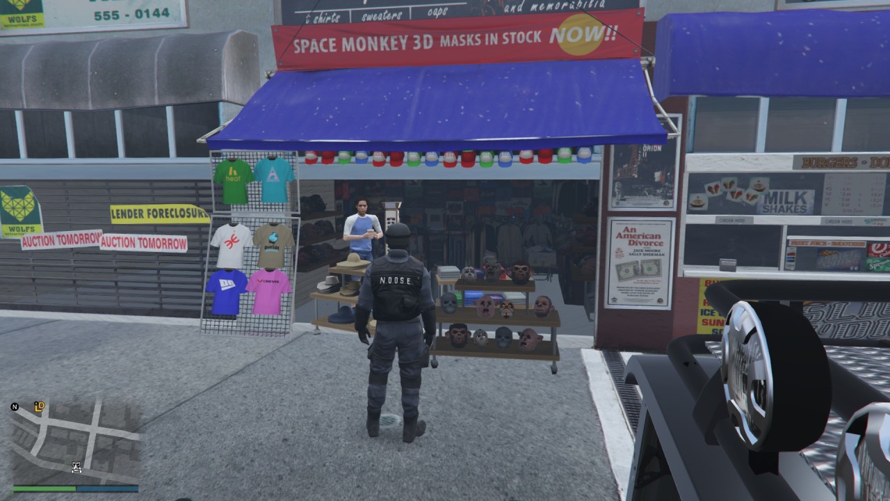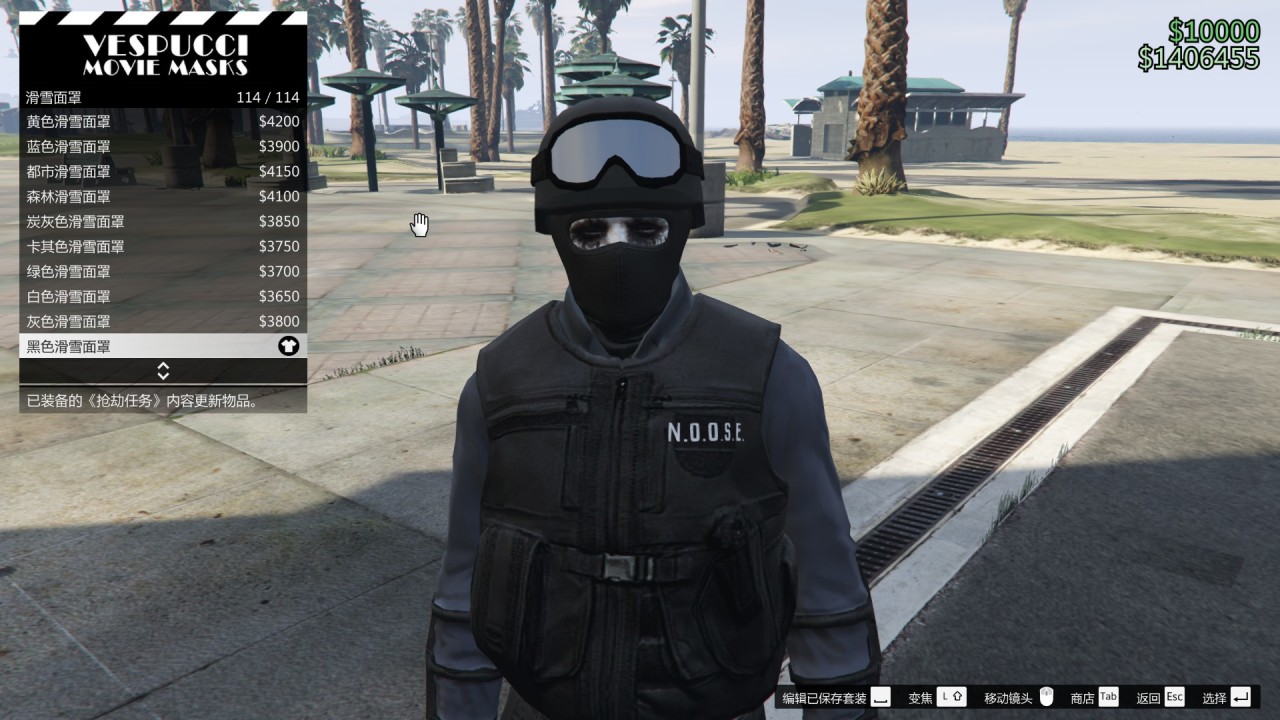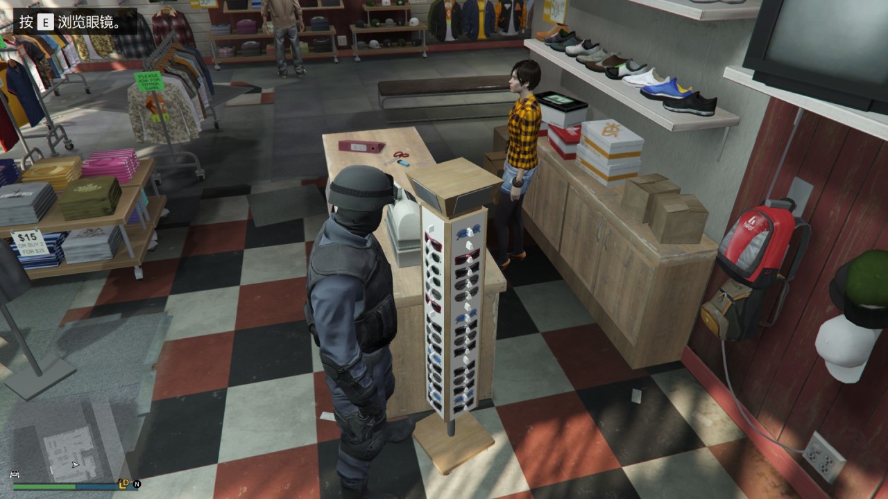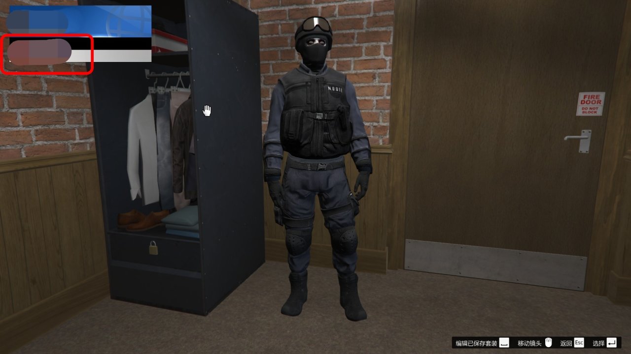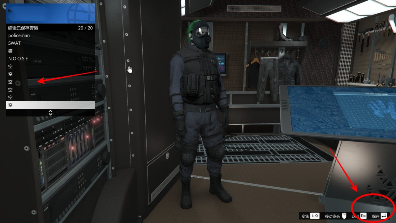 回到在線自由模式中以後,穿着身上的特警套裝,前往任意服裝店收銀員位置保存即可