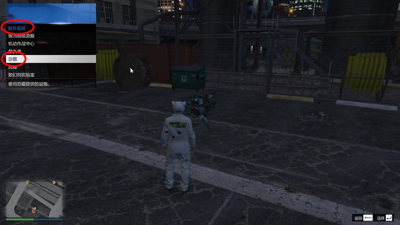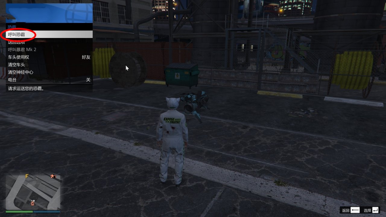 1.進入回收站,選擇“埃努斯 吉伯力”載具,開啓“小混混搶劫任務”
