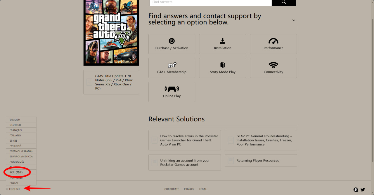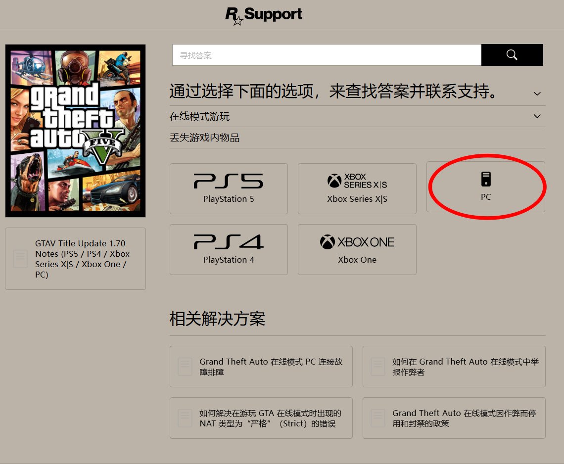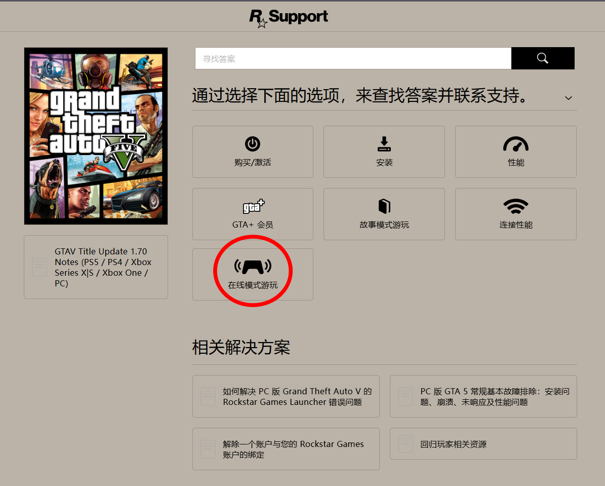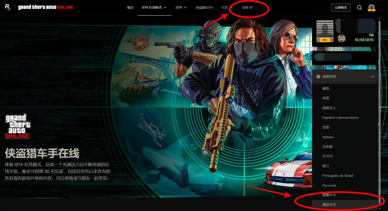 2.進入R星官網,設置語言簡體中文,選擇上邊“支持”選項