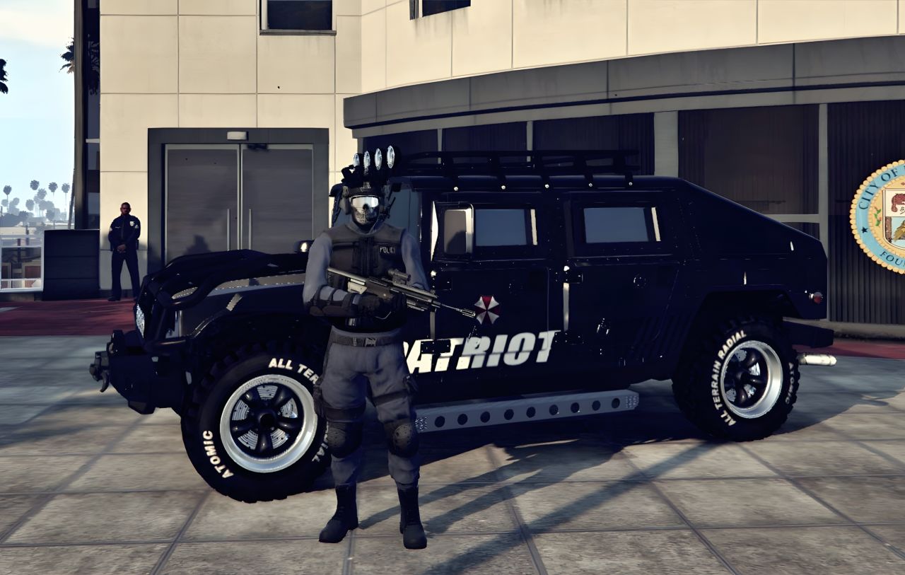 8.進入任務後,發現身上換上了POLICE特警套裝