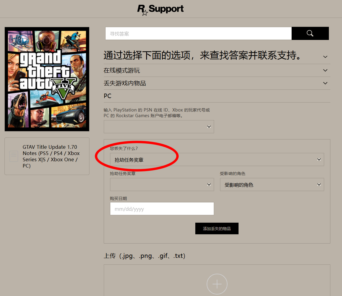 如果你明確參加了上個月的社區挑戰活動,可以前往R星官網進行申訴“丟失遊戲內物品”