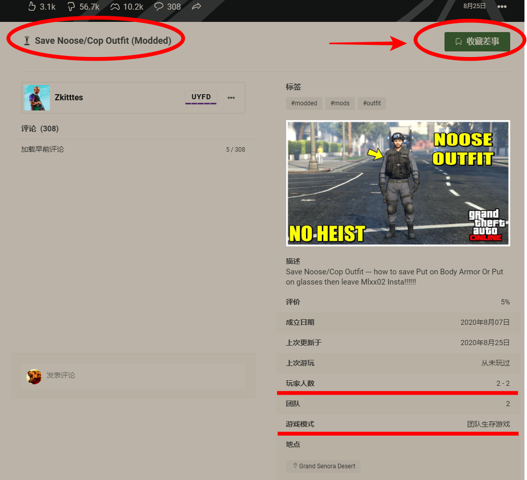 該方法是使用了R星官網收藏玩家自制差事,在差事中卡特警套裝的方法獲得