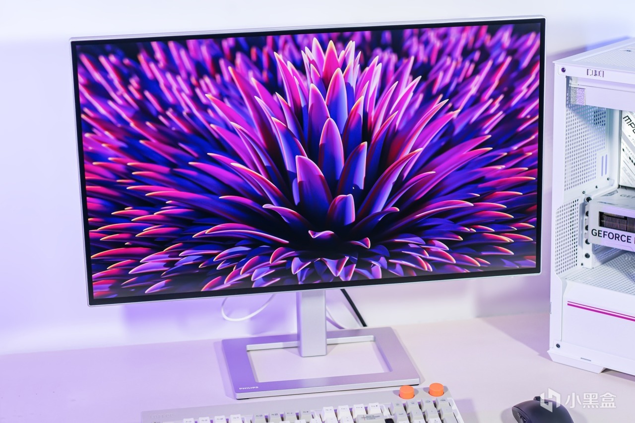 若想要体验4K超高清画面游戏,得先有支持4K分辨率的显示器,本次使用飞利浦27E2F7901显示器,其定位属于偏中高端与专业设计向的产品,采用四边窄边框的外观设计,其配备27英寸Nano-IPS Black面板,分辨率为4K(3840×2160)刷新率为60Hz,支持HDR400画面显示。