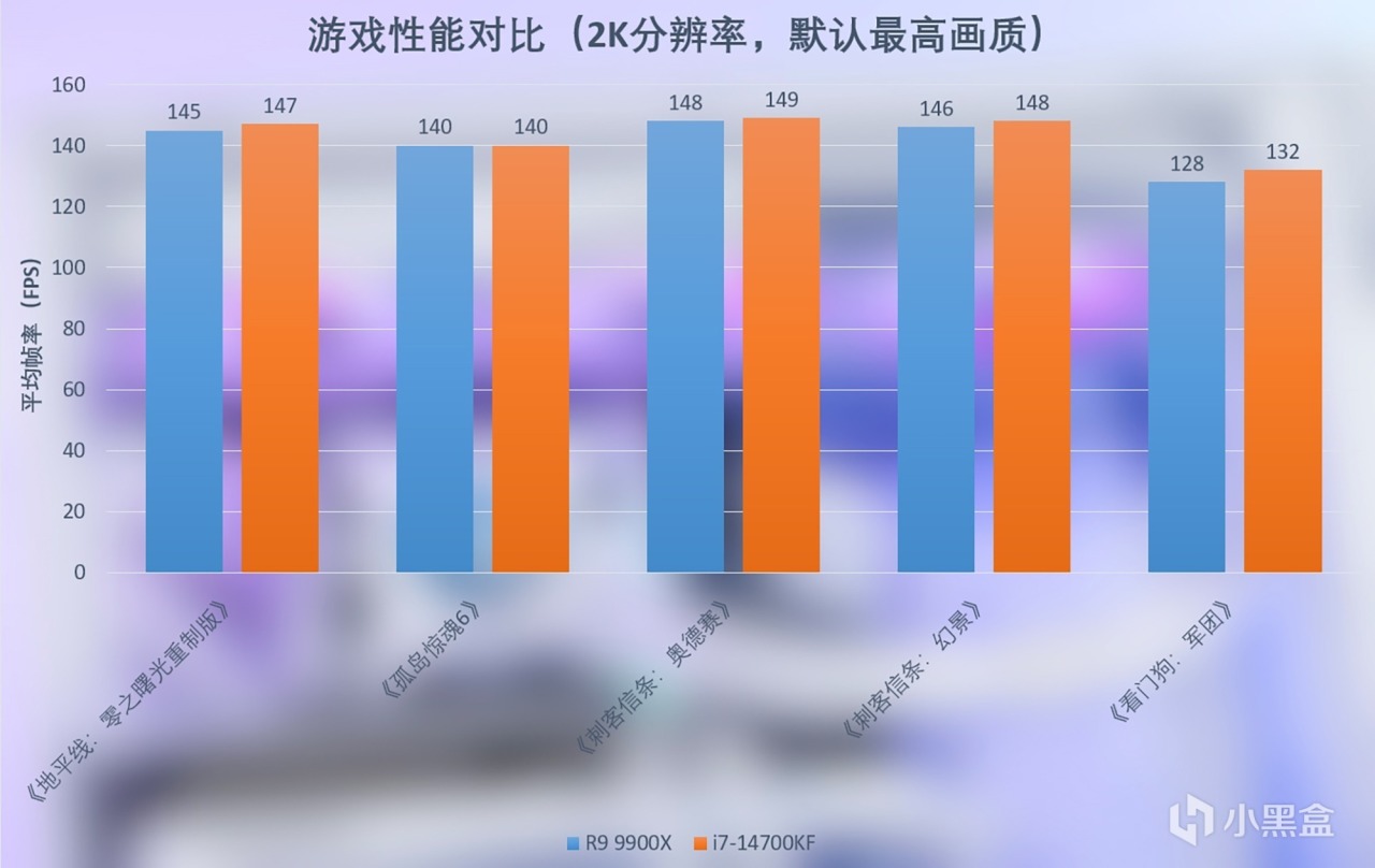 i7-14700KF与R9 9900X两款处理器在不同场景下互有胜负,不过在价格差距就比较大,同是盒装在第三方平台上,R9 9900X比i7-14700KF要贵500+,此前测试过两者在多款大型单机游戏中的性能表现,2K分辨率最高画质的设定之下,除了在《Far Cry6》游戏基准测试中平均帧率持平外,锐龙9 9900X处理器的平均帧率都比i7-14700KF处理器低那么2~4FPS。