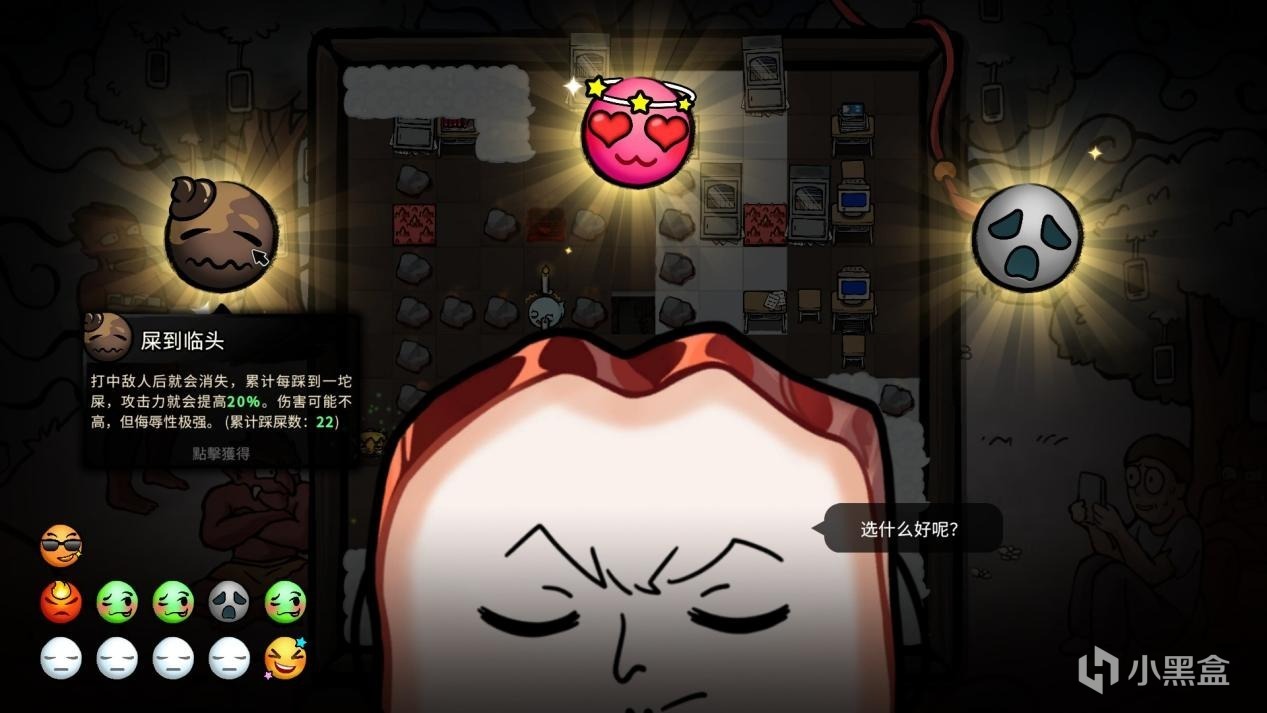 有的可以在弹射后分裂,有的可以减速或者眩晕敌人,有的可以施加着火状态来达到持续收割,有的自带穿透效果……不过最强的可能还是“屎到临头”,因为吃的是全局积累——你踩过的便便越多,攻击力就越高。